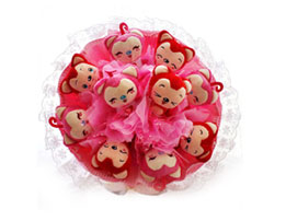 「编 号」 0900 「名 称」 天天想念 「材 料」 9只可爱小熊(样式仅保证相似)请提前5天以上预定,由我们专业花艺师包装安排配送 「包 装」 紫色羽纱圆形精美包装,同色网纱丰满 「价 格」 市场价格:¥295元 会员价格:¥283元 VIP价格:¥271元 赠送积分:250分 「花 语」 希望我的问候,如清新的雨,洗去你心头的烦忧,象凉爽的风,吹开你紧锁的眉头,让你无虑无忧,快乐**! 「配送范围」 本产品可送达全国各地区。